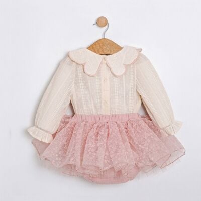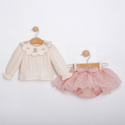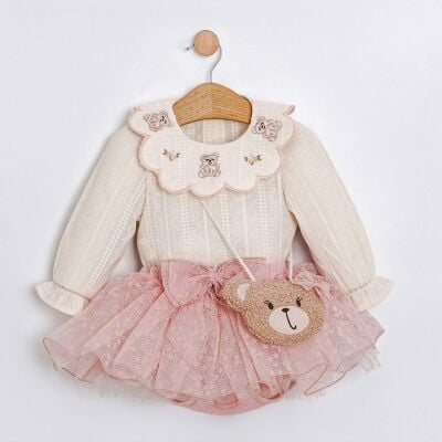 Zıbınlı Tütü Etekli Çantalı Bebek 3'lü Takım -Krem